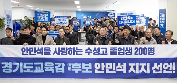 이날 수성고 졸업생 200명도 이날 지지 선언에 동참했다. 이들은 경기교육이 직면한 학습격차 문제와 빠르게 변화하는 교육 환경에 대응하기 위해서는 책임 있는 교육 행정과 분명한 교육 철학이 필요하다고 강조했다.