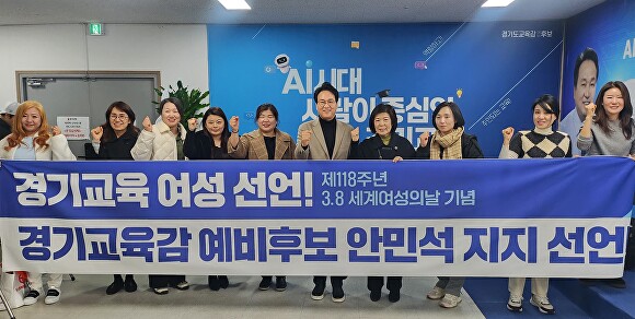 세계 여성의 날을 맞아 ‘안민석을 지지하는 경기교육 여성 선언’도 이날 함께 발표됐다. 선언 참여자들은 “여성은 단지 교육의 참여자가 아니라 경기교육의 미래를 설계하는 교육공동체 리더가 되어야 한다”며 “여성의 공감 능력과 책임성을 바탕으로 더 따뜻하고 공정한 경기교육을 만들어 가겠다”고 밝혔다.