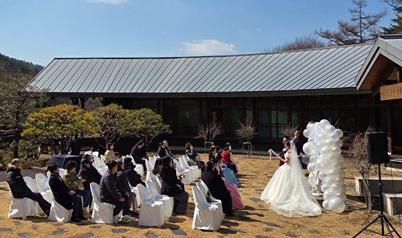 [아이뉴스24 이용민 기자] 7일 충북 청주 미동산수목원에서 ‘숲속 결혼식’ 2호 커플이 탄생했다.