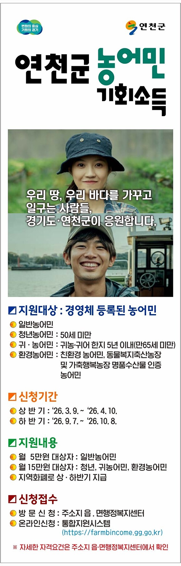 최대 월 15만원 지급…연천군, '농어민 기회소득' 신청 접수