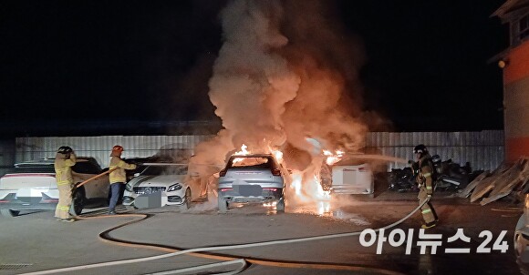 수리를 위해 세워둔 차량의 엔진룸에서 발화가 시작된 것으로 보이는 이 불로 주차돼 있던 볼보 XC40 1대가 전소하고 카니발·아우디 A6 등 주변 차량 4대 일부가 불에 타 소방서 추산 3300여만 원의 재산피해가 났다.