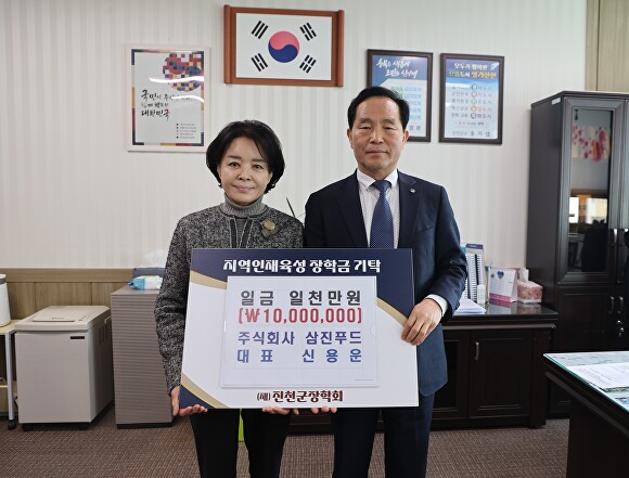 진천군은 17일 삼진푸드가 진천군청을 방문해 인재 양성 장학금 1000만원을 기탁했다고 밝혔다.