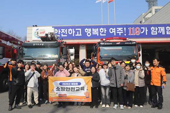 여주소방서에서 소방안전교육을 마치고 기념 촬영을 하고 있다. [사진=여주소방서]