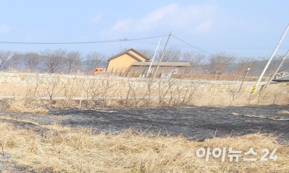 17일 오후 3시 21분쯤 영천시 임고면 양항리 노지에서 발생한 화재 현장. [사진=경북소방본부]