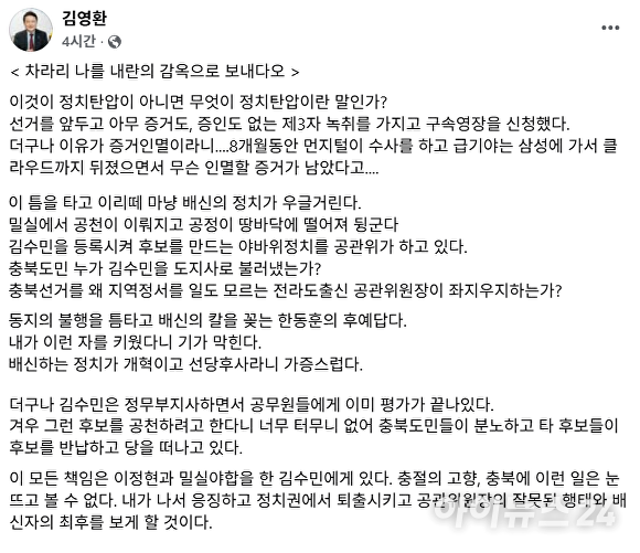 18일 김영환 충북도지사 페이스북 갈무리. [사진=아이뉴스24 DB]