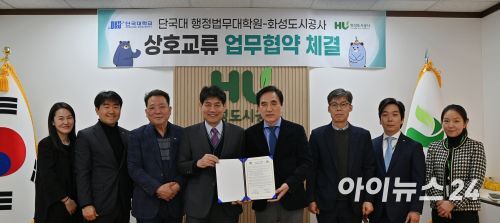[아이뉴스24 김장중 기자] 경기도 화성도시공사가 단국대학교 행정법무대학원과 상호 유기적인 협력체계 구축으로 인재 양성을 도모키로 합의하고 업무협약을 체결했다고 18일 밝혔다.