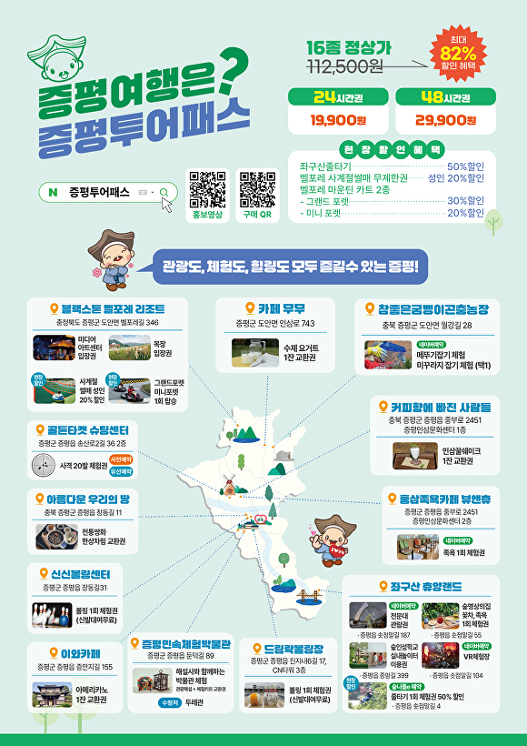 증평투어패스는 24시간권과 48시간권이 있다. 구매는 공식 누리집에서 간편하게 할 수 있다.