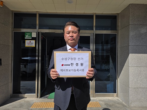 [아이뉴스24 이창재 기자] 전경원 대구시의회 국민의힘 원내대표가 19일 수성구청장 선거 예비후보 등록을 마치고 본격적인 선거전에 돌입했다.