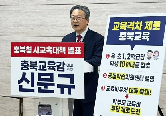 [아이뉴스24 이용민 기자] 6·3 충북교육감 선거에 출마한 신문규 예비후보가 교육 격차 해소를 위한 충북형 사교육비 대책을 내놨다.