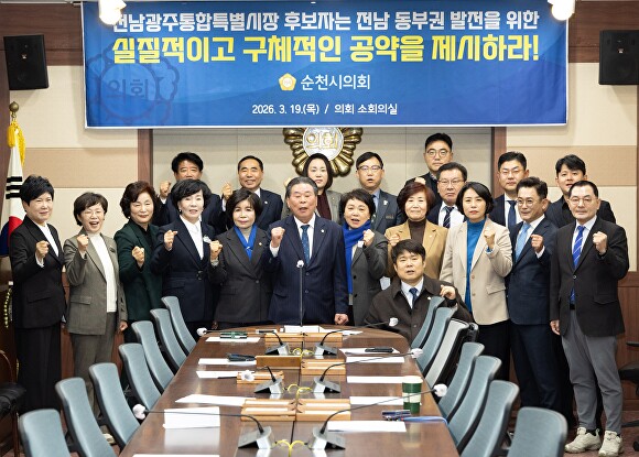 강형구 의장은 “전남광주통합특별시 특별법 통과에 따른 후속 조치와 동부권 RE100 반도체 산단, 그리고 순천대 의대 유치 등 당면한 현안들이 유종의 미를 거둘 수 있도록 책임 있는 의정활동을 펼쳐달라”고 전했다.