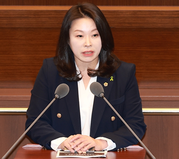 더불어민주당 박진희 충북도의원이 20일 도의회에서 5분 자유발언을 하고 있다. [사진=충북도의회]