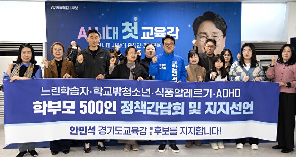 느린학습자·ADHD·학교밖청소년 학부모 500인과 도박 없는 학교 교장 조호연 외 경기도민 394명은 21일 안 예비후보 캠프 사무소에서 정책 제안과 함께 “교육 사각지대 해소를 이끌 수 있는 유일한 적임자”라며 지지를 선언했다.