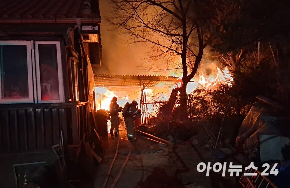 23일 경북소방본부 등에 따르면 전날 오후 10시 5분쯤 영주시 고현동 한 주택의 창고에서 화재가 났다.