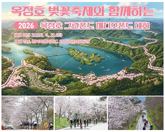 [아이뉴스24 박종수 기자] 전북 임실군이 벚꽃으로 둘러싸인 옥정호를 배경으로 자전거 라이딩의 매력을 만끽할 수 있는‘2026 옥정호 그란폰도‧메디오폰도 대회’를 오는 4월 11일‘옥정호 벚꽃축제’와 연계해 개최한다.
