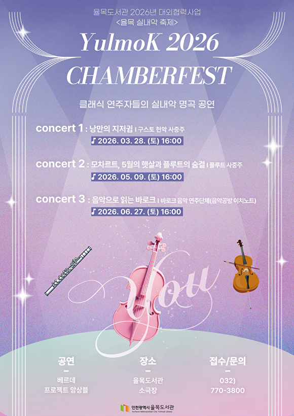 [아이뉴스24 이진수 기자] 인천광역시는 시민들이 일상 속에서 클래식 음악을 보다 친근하게 접할 수 있도록 율목도서관에서 ‘율목 실내악 축제