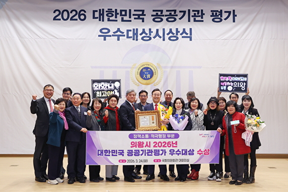 [아이뉴스24 김정수 기자] 경기도 의왕시는 지난24일 국회의원회관 대회의실에서 열린 ‘2026 대한민국 공공기관평가 우수대상’시상식에서 ‘정책소통·적극행정 부문’에 선정되는 영예를 안았다고 25일 밝혔다.