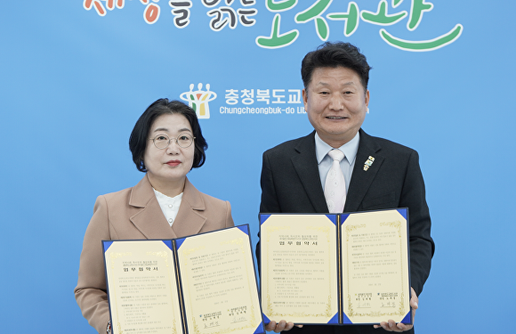 [아이뉴스24 이용민 기자] 충북교육도서관(관장 노재경)은 25일 새마을문고중앙회 청주시지부(회장 김대형)와 지역사회 독서문화 활성화를 위해 업무협약을 맺었다고 밝혔다.