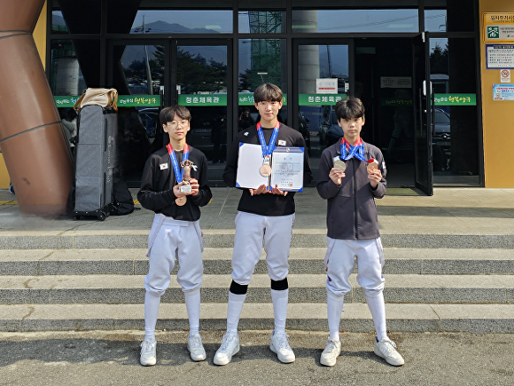 전날과 이날 열린 남중부 사브르 단체전에선 강승현(3학년)·이건이(3학년)·신주환(2학년) 선수가 팀워크를 발휘해 동메달을 땄다.