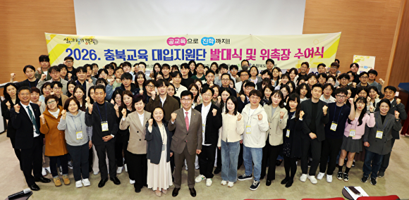 27일 충북교육 대입지원단 발대식 참석자들이 기념 사진을 찍고 있다. [사진=충북교육청]