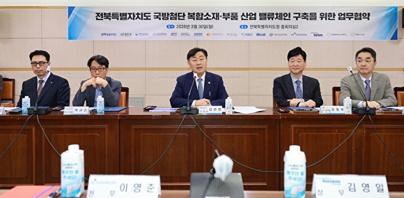 [아이뉴스24 김양근 기자] 전북특별자치도는 30일 전주 탄소소재 국가산단을 거점으로 ‘국방 첨단복합소재·부품 산업 밸류체인’을 구축하기 위해 업무협약을 체결했다.