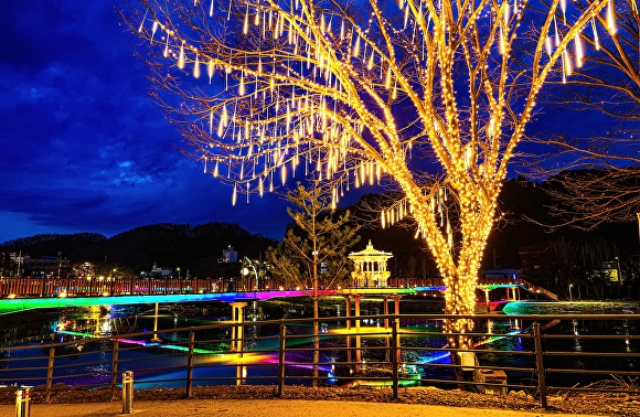 [아이뉴스24 안영록 기자] 충북 괴산군 오작교 일원이 야간 경관조명으로 볼거리를 선사하고 있다.