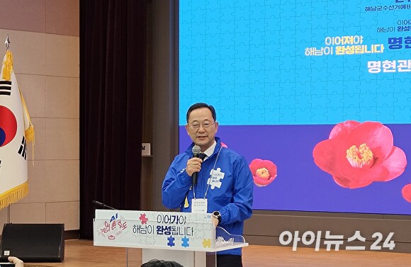 [아이뉴스24 한승엽 기자] 명현관 해남군수 예비후보가 1일 해남예술회관 에서 출마 기자회견을 열고 해남을 미래 생명과학 밸리로 육성하겠다는 ‘ACE 해남’ 비전을 선포했다.