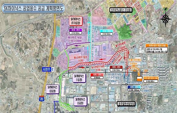 SK하이닉스 P&T7 공장 공업용수 공급 계획 평면도. [사진=청주시]