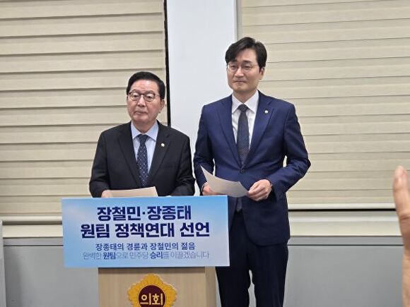 [아이뉴스24 강일 기자] 더불어민주당 대전시장 경선 결선에 진출한 장철민 의원과 장종태 의원이 정책연대를 선언하고 ‘원팀’ 구성을 공식화했다.