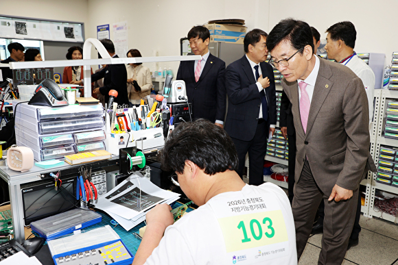 [아이뉴스24 이용민 기자] 윤건영 충북교육감이 7일, 충북기능경기대회가 열리고 있는 청주공업고등학교와 충북공업고등학교를 찾아 참가 학생들을 격려했다.