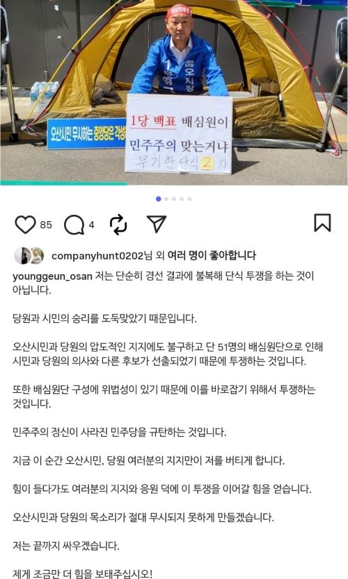 곽 전 시장은 SNS에 김민주 오산시장 예비후보를 뺀 나머지 후보로 구성된 ‘원팀’ 구성을 제안했고, 이에 대한 시민들의 비판이 이어졌다.