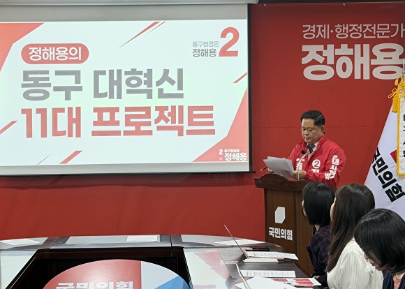 정해용 예비후보는 “대구시 경제부시장으로서 쌓은 행정 경험을 바탕으로, 동구를 하드웨어와 소프트웨어가 조화를 이루는 일류 도시로 도약시키겠다”며 지지를 호소했다.