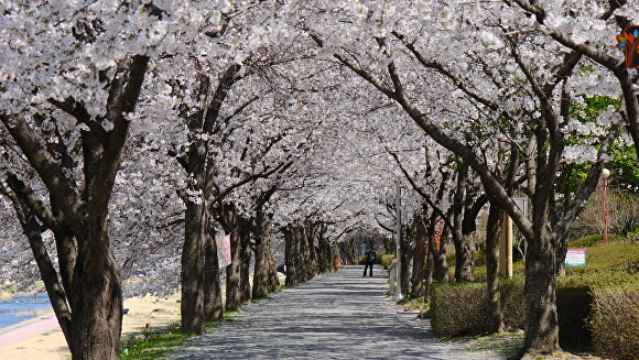 완연한 봄기운으로 영동읍 영동천 일원이 벚꽃으로 물들었다. [사진=영동군]
