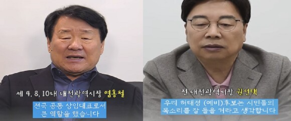 [아이뉴스24 강일 기자] 염홍철·권선택 전 대전시장이 더불어민주당 대전시장 경선에 나선 허태정 예비후보 지지내용이 영상으로 공개됐다.
