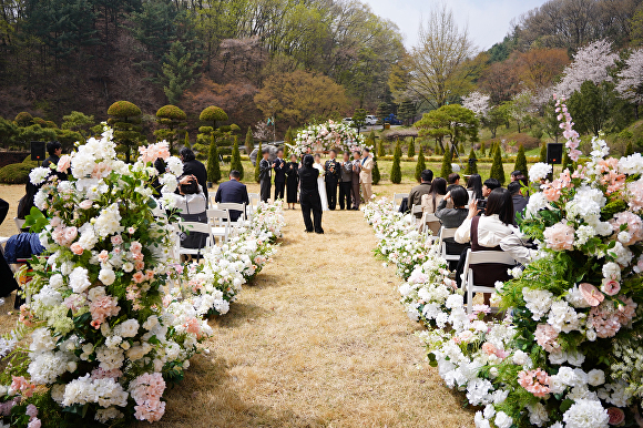 이날 예식은 하객 100여 명 규모의 스몰 웨딩으로 진행됐으며 꽃장식 등을 활용한 ‘실속형 표준가격’을 선택해 합리적이면서도 의미 있는 결혼식을 올렸다.