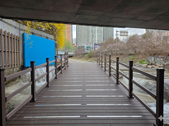 구는 성복천 배수통문을 정비하고 산책로와 자전거도로도 함께 정비해 보행 환경과 이용 안전성을 개선했다.