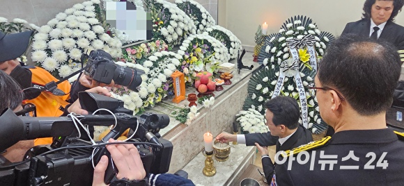 [아이뉴스24 한승엽 기자] 전남 완도군 수산물 냉동창고 화재 현장에서 순직한 소방관들의 빈소를 김민석 국무총리가 찾아 유가족을 위로했다.