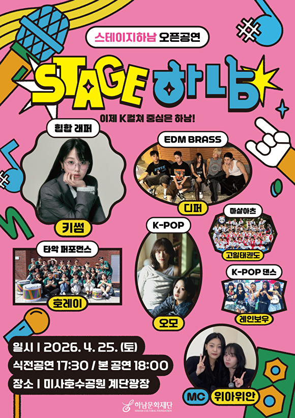[아이뉴스24 정재수 기자] 경기도 하남시의 대표 문화공연인 ‘2026 스테이지 하남!’이 오는 25일 미사호수공원 계단광장에서 오픈공연을 열고 올해 운영의 본격적인 시작을 알린다.
