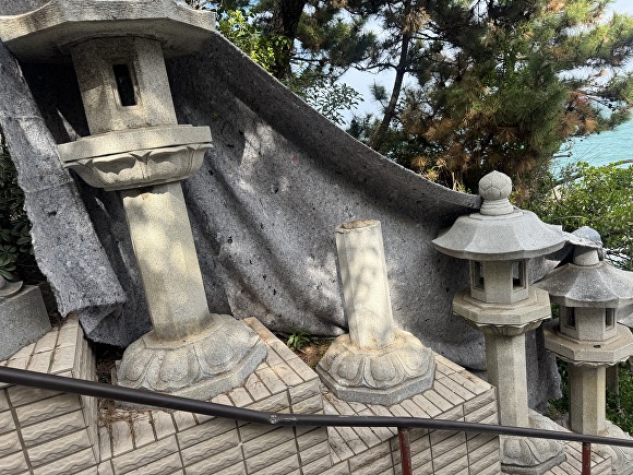 부산 해동용궁사의 석등이 떨어져 있는 모습. [사진=부산소방재난본부]