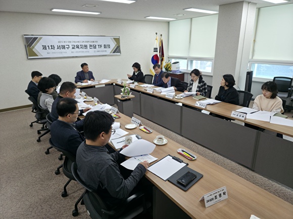 서부교육지원청 역시 7월 예정된 검단구 분구에 대비하고 서해구의 교육 발전을 도모하기 위하여, ‘서해구 교육발전 전담팀(TF)’을 구성하고 지난 10일 협의회를 가졌다.