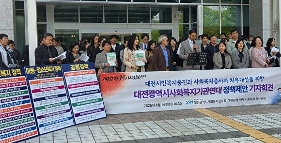 대전사회복지기관연대는 이날 기자회견에서 “초고령화, 돌봄 공백, 복지 사각지대의 고착화 등으로 지역사회가 복합적인 복지위기에 직면해 있으며, 이러한 위기 속에서도 사회복지 현장은 시민의 삶 가장 가까운 곳에서 버텨왔다”면서 “현장을 지키는 종사자들은 과중한 업무와 열악한 처우 속에서 여전히 헌신만을 요구받고 있다”고 강조했다.