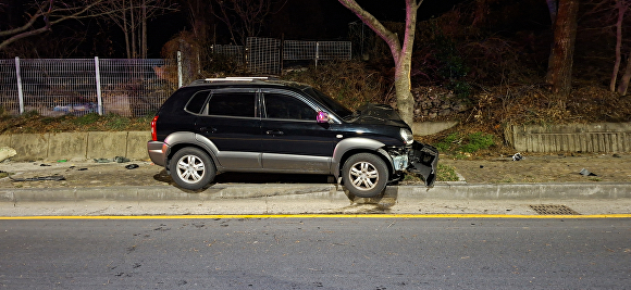15일 부산 금정경찰서에 따르면 지난달 7일 오전 2시 28분쯤 금정구 체육공원로에서 주행 중이던 차량이 진로 변경을 하는 또 다른 차량을 피하다가 중앙선을 넘어 도로 반대편 가로수를 충격했다.