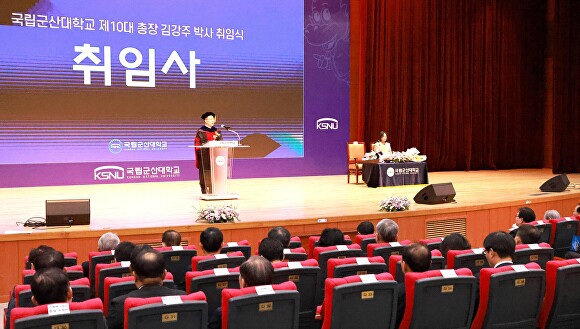 [아이뉴스24 박종수 기자] 국립군산대학교는 15일 오후 2시 교내 아카데미홀에서 ‘제10대 총장 김강주 박사 취임식’을 개최했다.
