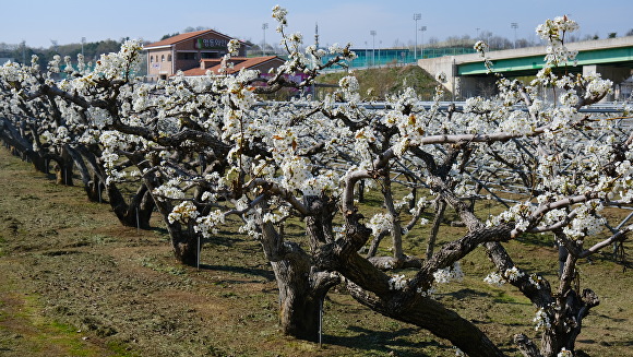 16일 영동군에 따르면 수령 100년이 넘는 배나무 20그루에 하얀 배꽃이 활짝 펴 장관을 이룬다.