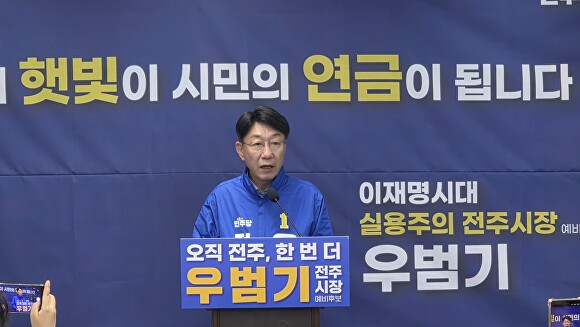 [아이뉴스24 김양근 기자] 우범기 더불어민주당 전북 전주시장 예비후보가 전주의 자연환경을 시민의 실질적인 부(富)로 환원하는 '전주형 햇빛소득 4대 프로젝트'를 발표했다.