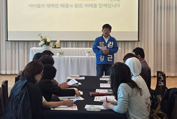 김 예비후보는 16일 한국유치원총연합회 충북지회 소속 유치원 원장 40여명과 간담회를 열어 관련 공약을 발표했다.