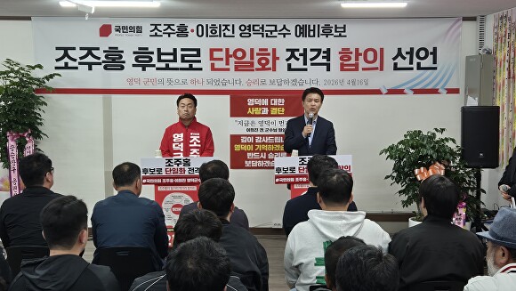 양측은 이날 오후 6시 30분 조주홍 예비후보 선거사무소에서 지지자들이 참석한 가운데 공동 담화문을 발표하고, 분열을 끝내고 하나로 힘을 모아 영덕의 변화를 만들어가겠다는 뜻을 밝혔다.