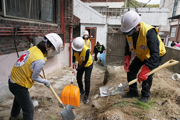 적십자사 충북지사 직원과 적십자사봉사회 청주흥덕구협의회 소속 봉사원 10여명은 17일, 청주시 흥덕구 봉명동 가스폭발 사고 피해 가구 환경 정비와 잔해물 수거 작업을 지원했다.