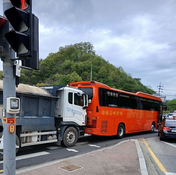 이 사고로 버스에 타고 있던 37명 중 24명이 경상을 입고 병원으로 옮겨졌다. 화물차 운전자 70대 A씨와 버스기사도 경미한 부상을 입은 것으로 전해졌다.