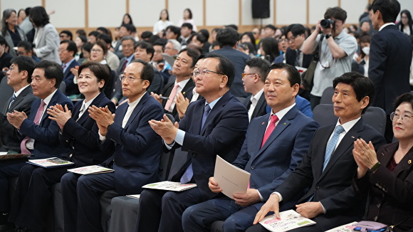 김부겸 대구시장 민주당 후보와 추경호 의원 등이 장애인의날 기념식 행사에 참석하고 있다 [사진=김부겸 예비후보캠프 ]