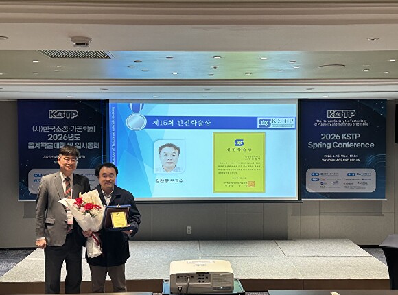 [아이뉴스24 박종수 기자] 국립군산대학교(총장 김강주) 신소재공학과 김찬양 교수가 최근 윈덤 그랜드 부산에서 개최된 ‘2026년 한국소성·가공학회 춘계학술대회’에서‘신진학술상’을 수상했다.